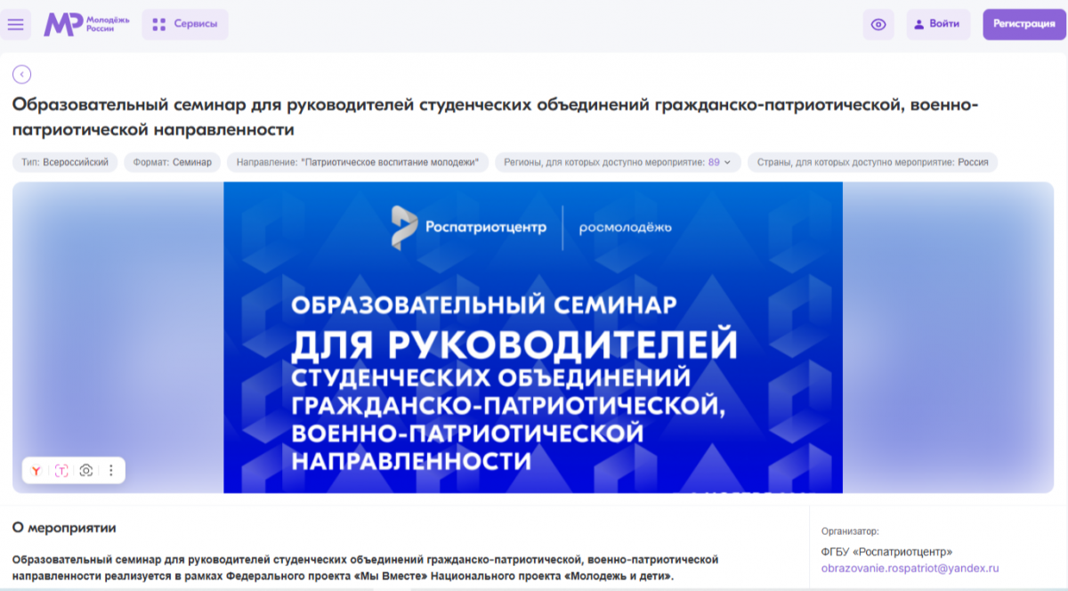 Он состоится в начале ноября в Калужской области. Обучение проводится в рамках федерального проекта «Мы Вместе» национального проекта «Молодежь и дети».