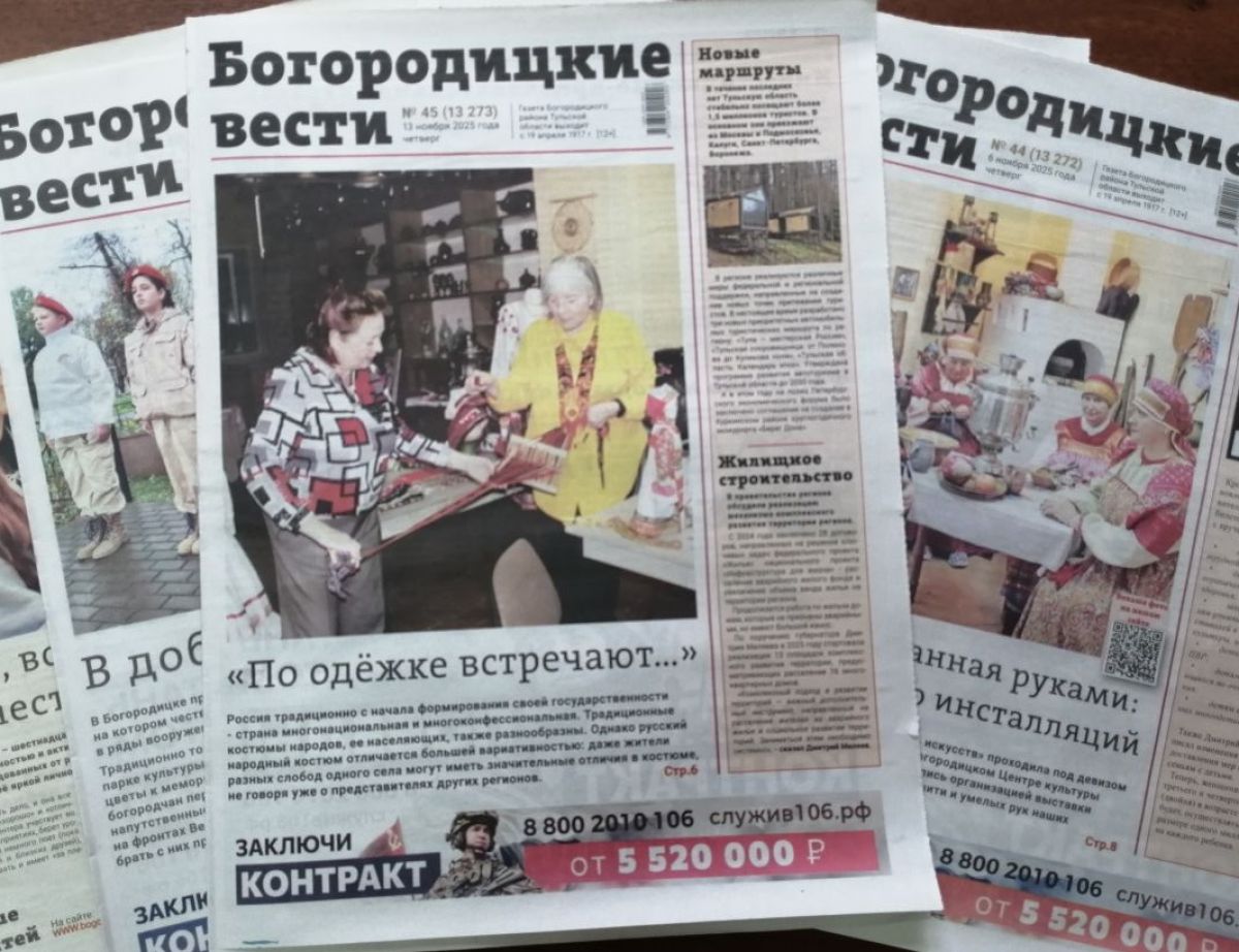 Вышел очередной номер газеты «Богородицкие вести» (№45 от 13 ноября 2025 года)