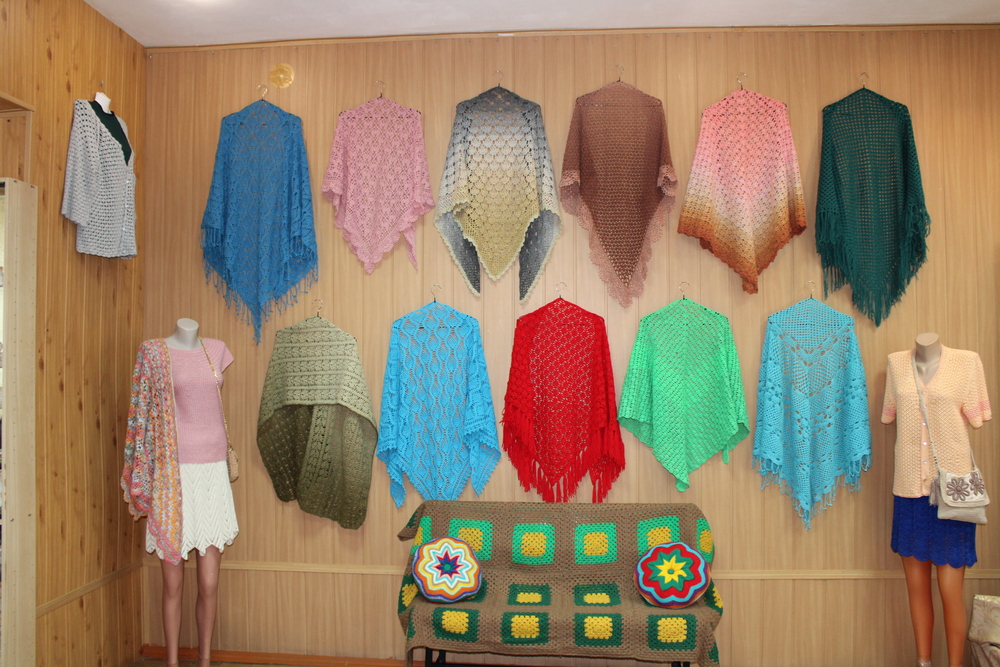 Все, что здесь представлено, сделано руками женщин, занимающихся в клубном объединении Центра народной культуры и ремесла. С их участием и помощью работников Центра, народные промыслы не просто живут, они популярны у наших земляков, развиваются и передаются из поколения в поколение.