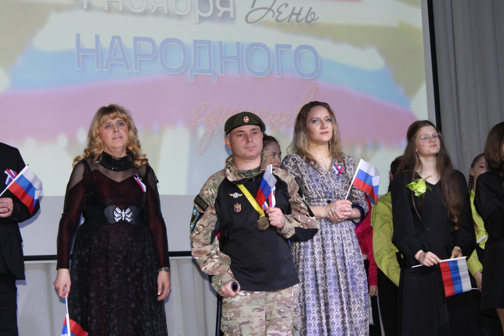 - День народного единства – один из главных наших государственных праздников, корни которого - в далеком прошлом, когда народное ополчение освободило Москву, а затем и русскую землю от захватчиков. На плечи не одного поколения наших предков легли суровые испытания, не единожды враг стоял у нашего порога. Благодаря сплоченности предков, мы всегда отстаивали свои интересы, свою идентичность, свободу и независимость. Сегодня наши парни принимают участие в специальной военной операции, защищают наши национальные интересы. Хочется пожелать всем им скорейшего возвращения на родную землю и, конечно же, с победой. Опираясь на мощный фундамент наших многонациональных связей, мы желаем нашему Отечеству развития и процветания.