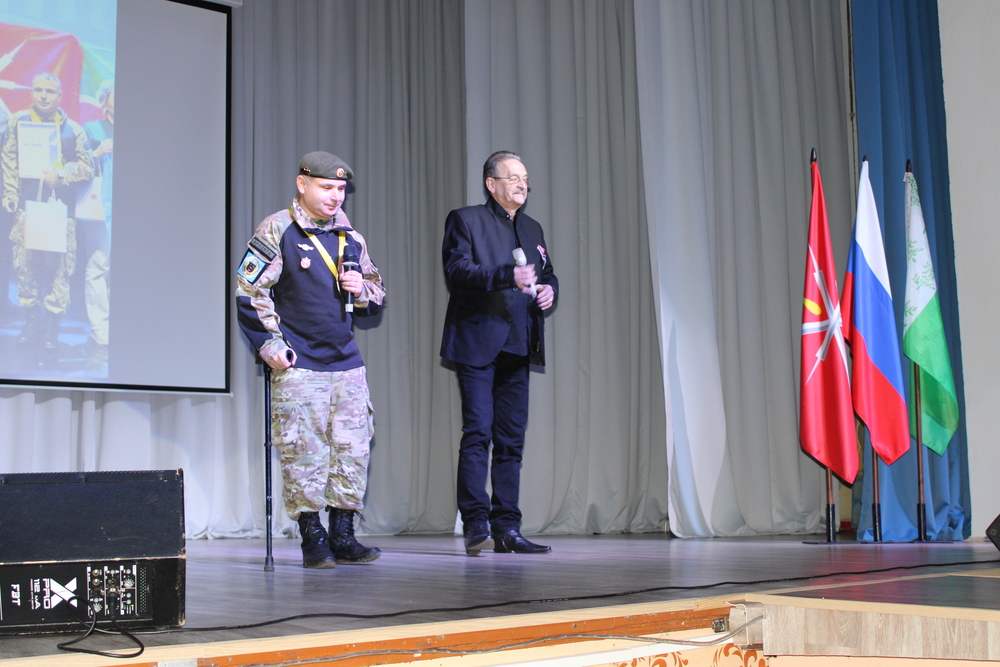Отдельно отметили сотрудника КИТЦ «Спектр» Рустама Доскиева, вернувшегося накануне из Москвы с чемпионата по профессиональному мастерству «Абилимпикс» с золотой медалью в номинации «Исполнительское мастерство». Вместе с Александром Кадушкиным, также участвовавшим в номере, они повторили для богородицких зрителей песню «Звездочка в стакане», принесшую победу нашему вокалисту.